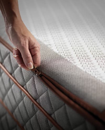 DUX 产品基于组件的特性与用于制造这些产品的材料相结合,通过创造出经得起时间考验的产品,为保护地球的这一理念注入了力量。例如,床基采用从瑞典北部采伐的木材制成,那里严寒的冬天产生了生长缓慢、经久耐用的松树,而瑞典钢材、乳胶和高线数棉则用于制造床垫的连续线圈、填充物和和软垫。