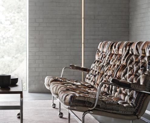 Karin 73 以其面世年份命名,是 Bruno Mathsson 设计的 Karin 扶手椅的第一款升级产品。现在,我们推出了一款具有相同经典优雅设计的三人位沙发,进一步扩展了本系列。尽情享用奢华舒适的填充座垫以及带有支撑网的镀铬框架。除了沙发和原创坐椅外,Karin 73 系列还提供多种尺寸的脚凳和桌子。